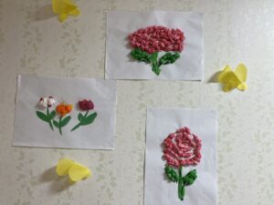 お花がみを小さく丸めて1つ1つ貼っていく地道な作業です🌟