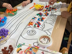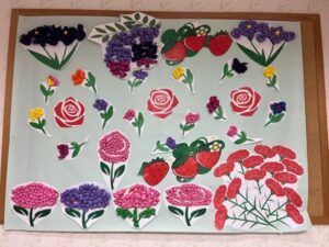 お花がみを小さく丸めて1つ1つ貼っていく地道な作業です🌟