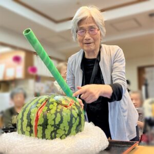 おやつにスイカを提供し、皆様とても喜んでくださいました(*^^*)