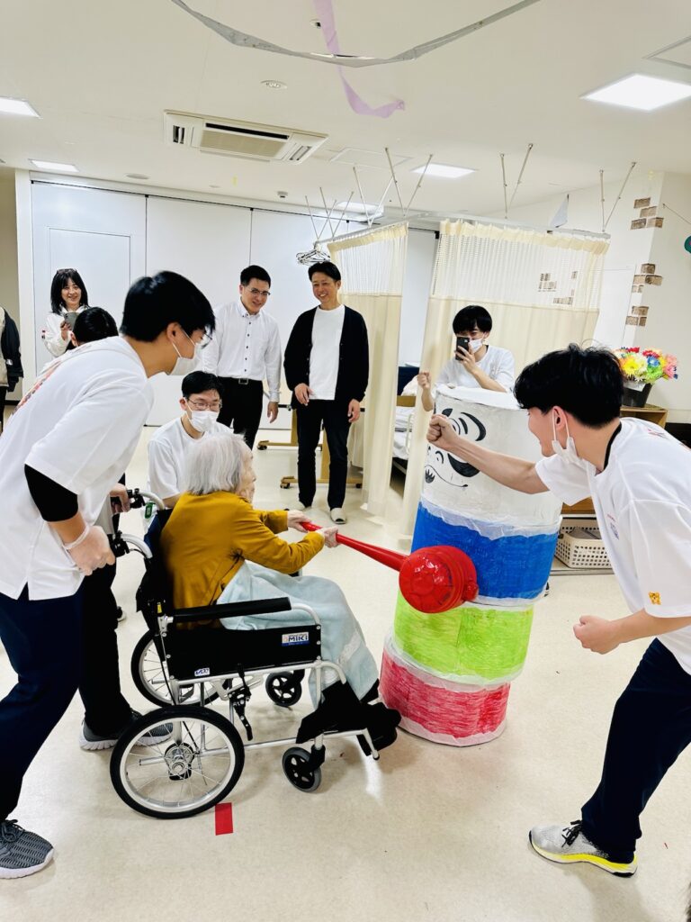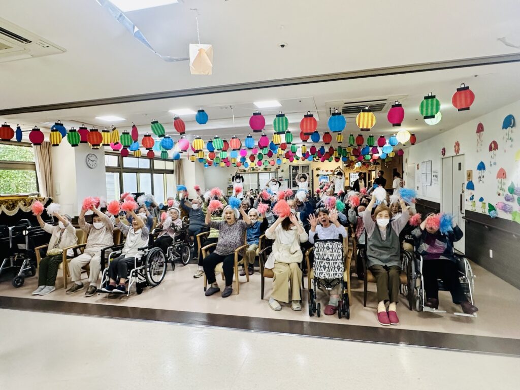 昼食はお寿司の食べ放題、午後からはご家族様にも来ていただきゲームと踊りをして楽しい時間になりました🎊🎊🎊